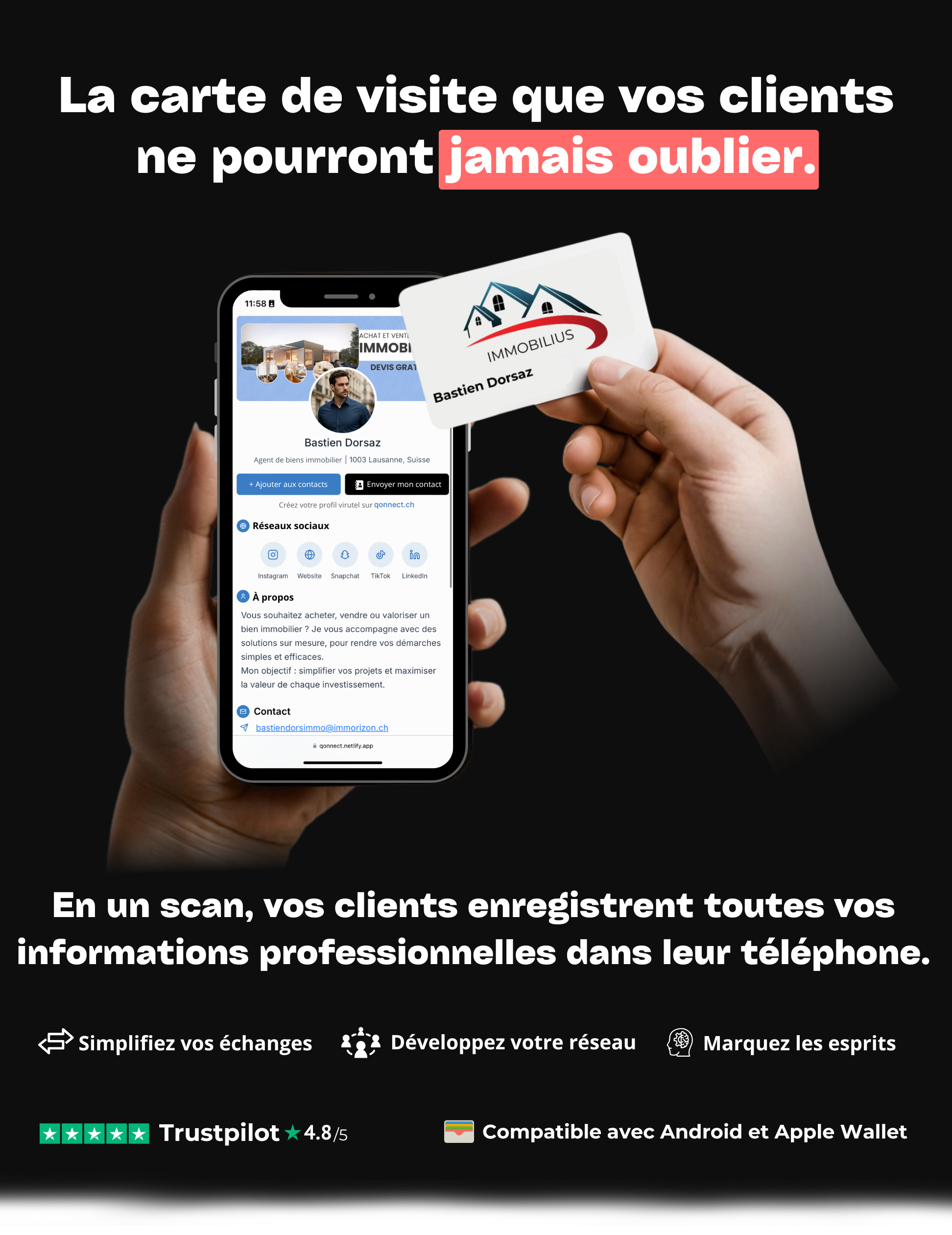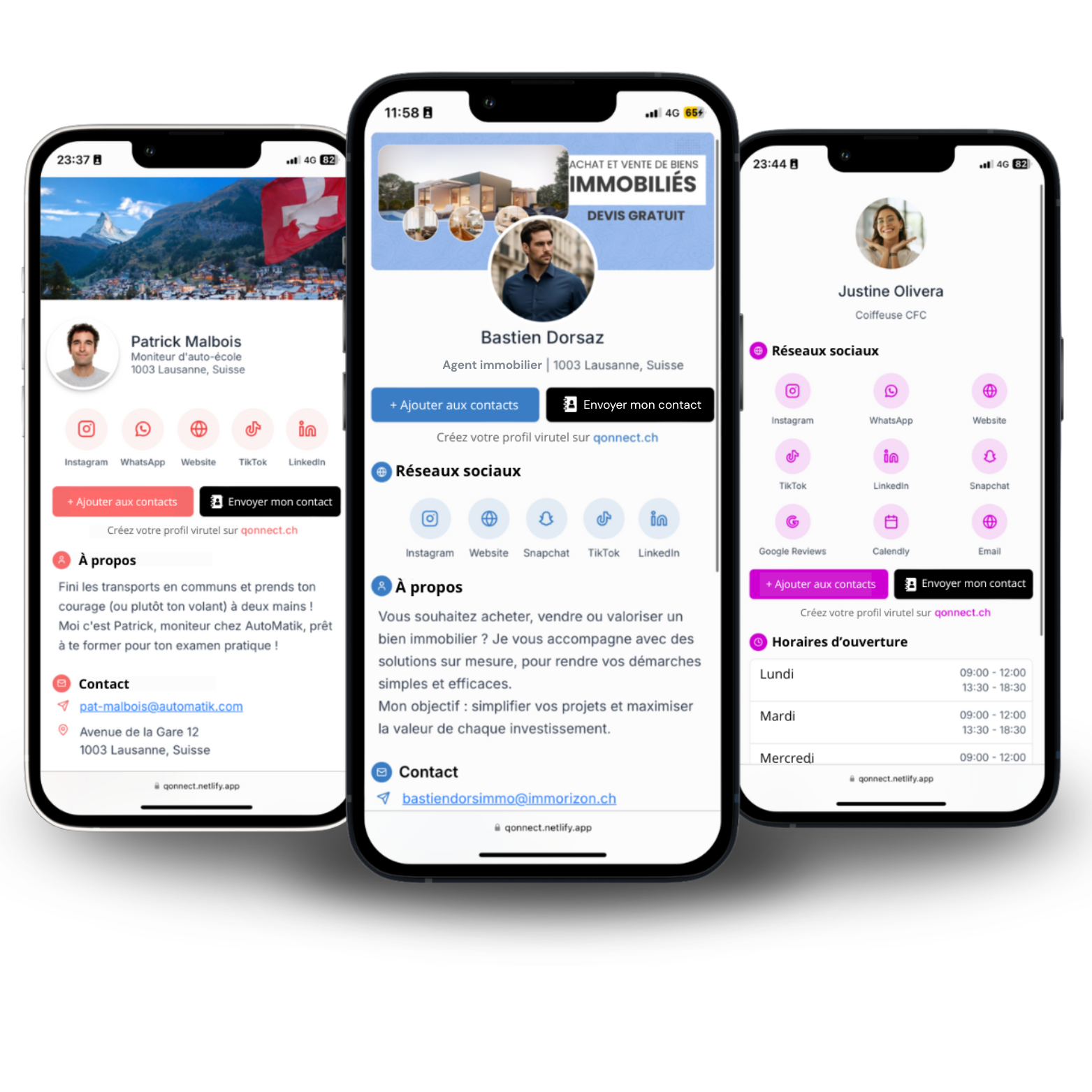 Parce qu’avec Qonnect, vous gagnez du temps et laissez une impression marquante. 🔥 Plus besoin de stocker des cartes papier ni de taper manuellement un numéro. Vous facilitez votre prospection et montrez une image moderne et professionnelle.