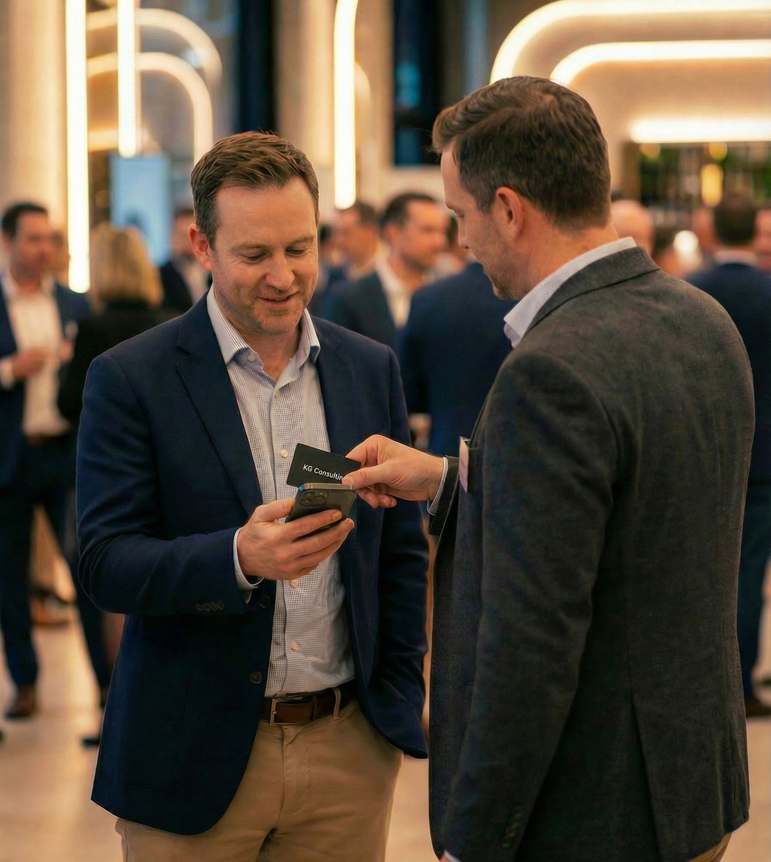 Sur le terrain (salon, événement, rendez-vous), une carte de visite classique finit dans une poche, pour plus tard. On fait face à la fameuse phrase : « Je prends votre carte, je vous écrirai. » Qonnect déclenche l’action immédiatement et permet d’éviter l’inaction.
